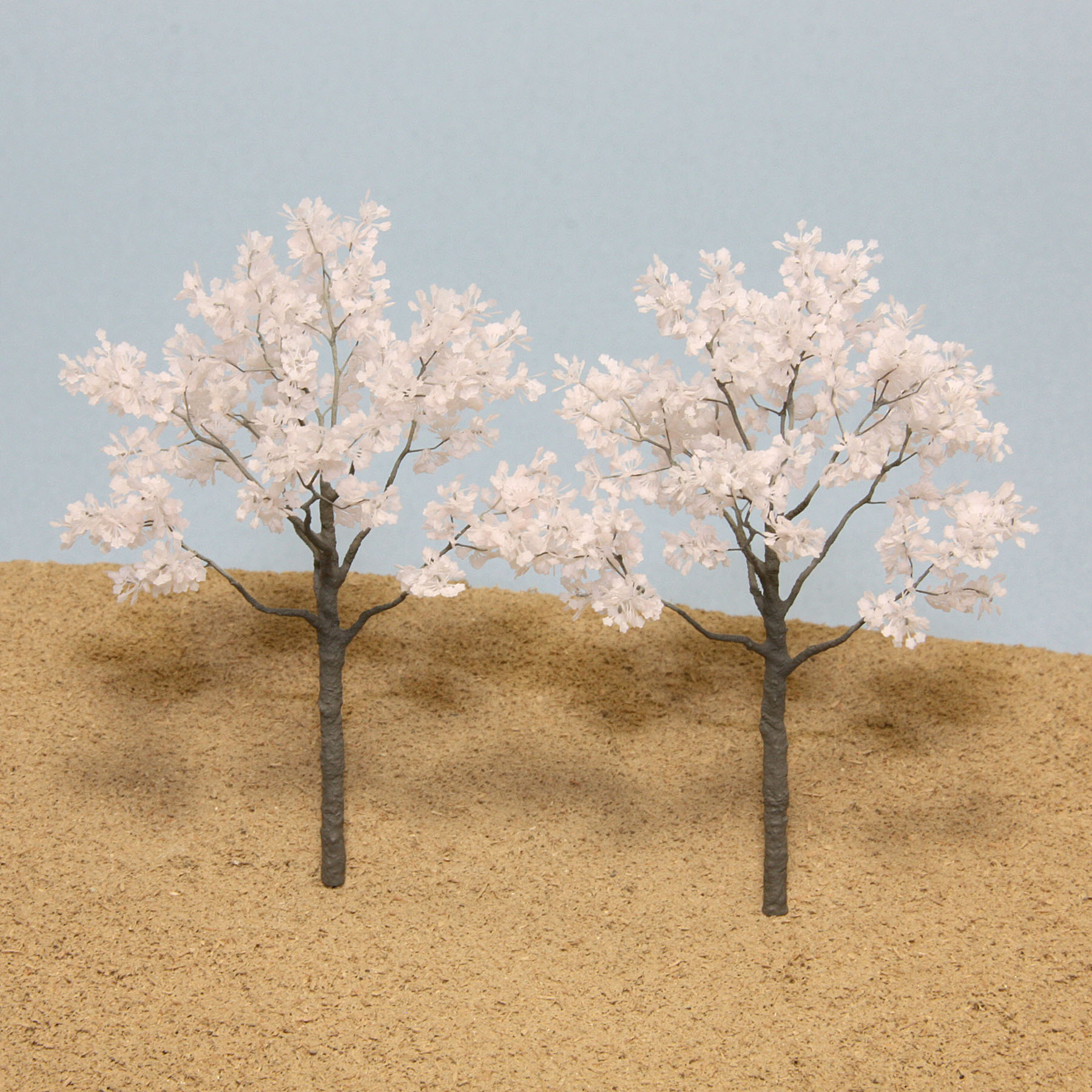 「花の大きさは約1ミリ!」当方独自製法のパーツ【枝葉シリーズ】により作られた樹木模型です。花の一枚一枚までも表現し、繊細さ空気感にこだわりました。スポンジ素材などの樹木模型とは一線を画します。ジオラマにおいては近距離やメインの場所の配置にもお勧めです。貴方のミニチュア模型・ジオラマ作品にぜひご利用ください。