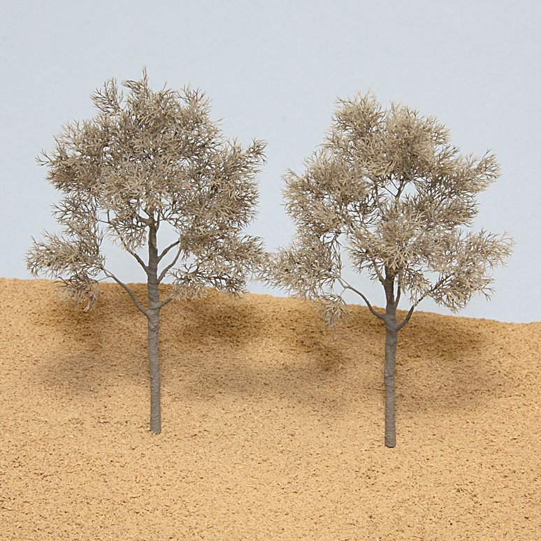 幹、枝にはワイヤーが入っていますので多少は枝振りを好みに調整することも可能です。取付けたい位置に穴を開け、そこに樹木模型を差込んで取付けてください。